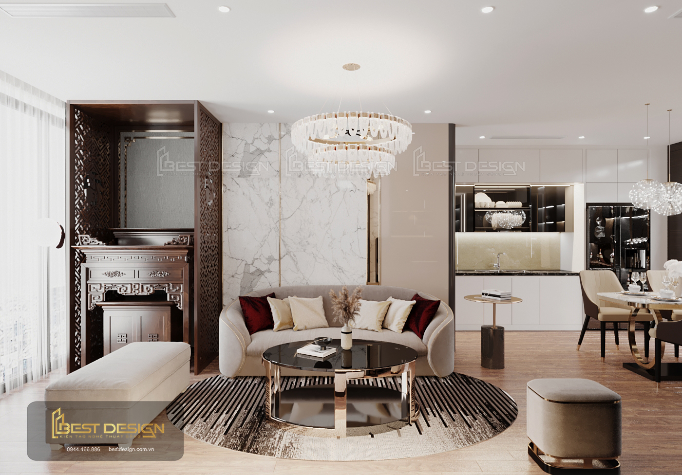 Dù mới được bàn giao vào quý II/2022 nhưng đơn vị thiết kế kiến trúc – nội thất Best Design đã được chị Nhung lựa chọn và giao phó nhiệm vụ quan trọng là hoàn thiện nội thất cho căn hộ từ A – Z.