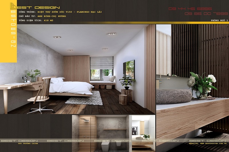 Với phong cách thiết kế đơn giản nhưng sang trọng, các chuyên gia của Best Design đã tạo nên một không gian tuyệt vời để giúp chủ nhân có những giây phút thư giãn sau một ngày làm việc mệt mỏi. Với gam màu trầm ấm cùng ánh sáng và không gian được bố trí hợp lý, không gian phòng ngủ trở nên rất thoải mái và ấm áp.