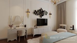 Để phòng ngủ thêm sinh động và có tính thẩm mĩ cao các thiết kế của Team BEST DESIGN đã có những họa tiết sắp xếp vô cùng tinh tế, như họa tiết trên tivi hoặc những chiếc đèn ngủ trông rất lạ mắt và độc đáo.