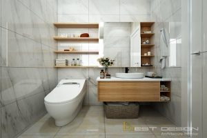 Nhà vệ sinh phòng ngủ Master cũng được thiết kế với tông màu tươi sáng. Các nội thất phát huy được đúng công năng và cũng không quá cầu kì trong sắp xếp cũng như họa tiết trang trí.